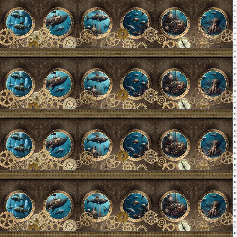 Tissu Border Multi 3ST1 Jason Yenter - Steampunk Menagerie - In The Beginning
